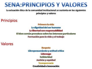 El documento describe 14 criterios para promover una convivencia positiva en la comunidad educativa, incluyendo la puntualidad, el respeto mutuo, el diálogo, evitar el liderazgo negativo, la responsabilidad, prestar atención en clase, controlar las emociones, respetar los trabajos en grupo, comunicarse oportunamente con el instructor, acatar las decisiones grupales, participar en actividades extracurriculares, ser responsable de los recursos de aprendizaje, actuar con honestidad y respeto, y usar los espacios de comunicación de forma