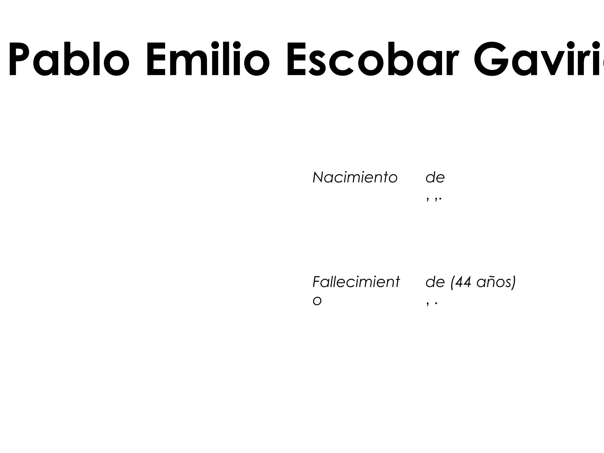 Pablo Emilio Escobar Gaviria fue un narcotraficante colombiano y fundador del Cartel de Medellín, convirtiéndose en el hombre más poderoso de la mafia colombiana y uno de los más ricos de su época. Fue responsable de cientos de asesinatos, actos de terrorismo como bombas que dejaron más de 1000 muertos, y el asesinato de 657 policías entre 1989 y 1993. Su lujosa hacienda Hacienda Nápoles era símbolo de su éxito en el narcotráfico.
