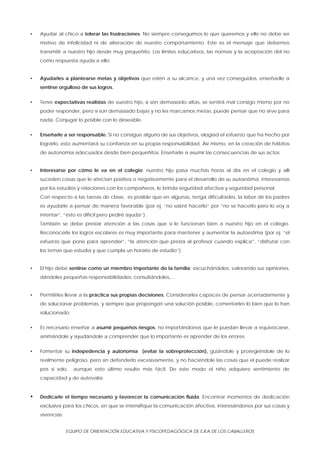 El documento ofrece recomendaciones para fomentar la autoestima de los niños desde la familia. Sugiere elogiar los comportamientos positivos en lugar de ridiculizar, ayudar a mejorar otras conductas, y utilizar un lenguaje específico al dirigirse a los niños. También recomienda centrarse en las cualidades positivas del niño, ser buenos modelos de autoestima, ayudarles a tolerar frustraciones y establecer metas alcanzables.