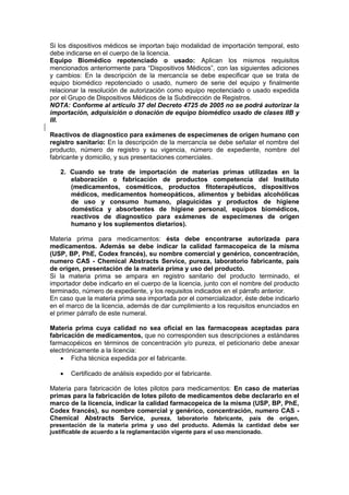 Este documento proporciona pautas para diligenciar las intenciones de importación ante el INVIMA. Detalla los requisitos de información que deben incluirse en las casillas 44 y 28 de la licencia de importación, dependiendo del tipo de producto importado (terminado, materia prima, etc.). Explica los detalles específicos que deben proporcionarse para diferentes categorías de productos como medicamentos, cosméticos, alimentos y otros.
