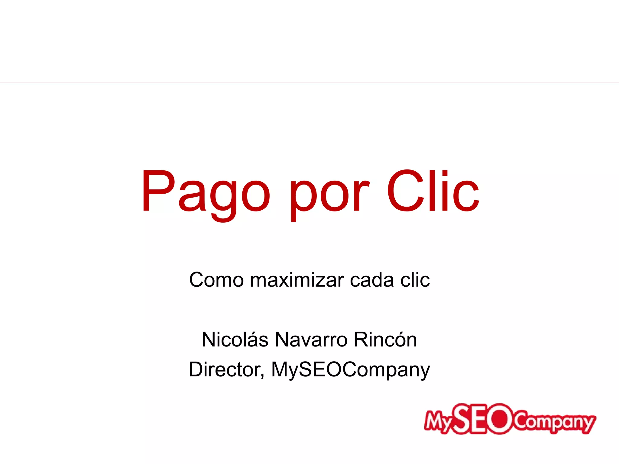 Este documento ofrece una guía sobre cómo maximizar el rendimiento de la publicidad de pago por clic (PPC). Define PPC y explica los principales jugadores como Google Adwords y Yahoo. Luego proporciona consejos sobre factores clave como la selección de palabras clave, el posicionamiento de anuncios, el diseño de páginas de aterrizaje y el análisis de campañas para mejorar la conversión y el retorno de la inversión.