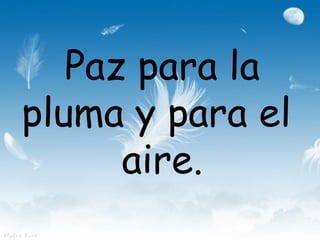 Este poema pide paz para numerosos elementos de la naturaleza, la sociedad y el ser humano, incluyendo la tierra, el agua, el amor, la palabra, el cuerpo, la risa, el llanto, Oriente, Occidente, los ricos, los pobres, los vivos y los muertos. En general, el poema promueve una visión de paz universal que abarca a toda la humanidad y el mundo natural.