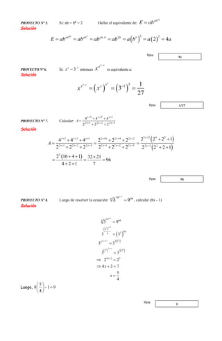 Este documento contiene 21 proyectos o ejercicios matemáticos de álgebra para estudiantes de segundo año de secundaria. Los proyectos incluyen operaciones como reducción, suma, resta, multiplicación y división de expresiones algebraicas, resolución de ecuaciones, y racionalización de fracciones. El estudiante debe mostrar los cálculos para cada proyecto.