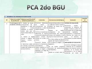 Este documento presenta un plan de planificación curricular anual (PCA) para la Universidad Nacional de Chimborazo. El PCA contiene 8 secciones que cubren información como los datos de la asignatura, los objetivos de las unidades de planificación, los contenidos, las orientaciones metodológicas, la evaluación, los recursos, los planes de mejora y observaciones. El documento provee lineamientos para el desarrollo del PCA de acuerdo con el currículo nacional y el contexto institucional.