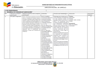 Este documento presenta el plan curricular anual para el área de matemáticas en noveno año de educación superior. Incluye información sobre los objetivos generales y específicos, el tiempo de instrucción, y el desarrollo de cuatro unidades que abarcan temas como números racionales, ecuaciones, polinomios, y estadística. Las unidades se enfocan en desarrollar el pensamiento lógico y crítico de los estudiantes mediante la resolución de problemas matemáticos.