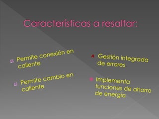 Este documento explica que la velocidad de las ranuras PCIe varía dependiendo del tamaño, siendo la ranura PCIe x16 la más rápida y la x1 la más lenta. Las ranuras más grandes como x16 y x8 se usan para tarjetas gráficas y RAID, mientras que las ranuras más pequeñas como x1 y x4 se usan para dispositivos más lentos como tarjetas de red y sonido. Actualmente, las ranuras x1, x4 y x8 se están quedando obsoletas, y la ranura x16 pronto será