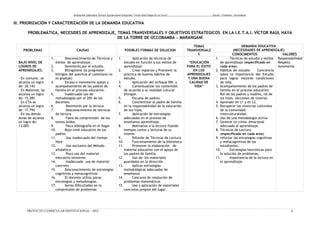 Este documento presenta información sobre el Proyecto Curricular Institucional de la Institución Educativa Técnico Agropecuario Integrado “Víctor Raúl Haya De La Torre” en Ocobamba, Perú. Identifica problemas educativos como bajos logros de aprendizaje, abandono familiar, desnutrición y falta de higiene. Propone soluciones como aplicar técnicas de estudio, involucrar a los padres, promover la nutrición y la salud, y aprovechar los recursos culturales locales. El objetivo es mejor