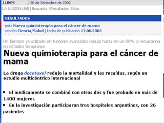 El documento analiza el uso de términos médicos en el discurso político y cómo esto puede contaminar el lenguaje periodístico. Se encontró que el 68% de los artículos políticos en dos diarios principales contenían términos médicos, lo que sugiere una "medicalización" de la cultura. También se discuten los desafíos éticos relacionados con los conflictos de intereses en la cobertura periodística de temas de salud.