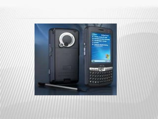 Este documento resume las características y la historia de los organizadores digitales personales (PDA). Explica que un PDA es un dispositivo portátil diseñado originalmente como una agenda electrónica que ahora puede realizar muchas funciones de una computadora. Detalla que los primeros PDA aparecieron en 1989 y que su popularidad creció en 1995 con la compañía Palm. Ahora los PDA modernos tienen pantallas táctiles, memoria, conectividad inalámbrica y software para calendarios, contactos y notas.