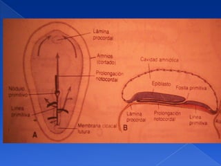 El documento describe los procesos de gametogénesis, fecundación, desarrollo embrionario temprano, embriogénesis, organogénesis y periodo fetal. Se explican los procesos de formación de óvulos y espermatozoides, la fecundación, la implantación del blastocisto, la gastrulación y formación de las capas germinativas, y el crecimiento y maduración de los órganos durante el periodo fetal.