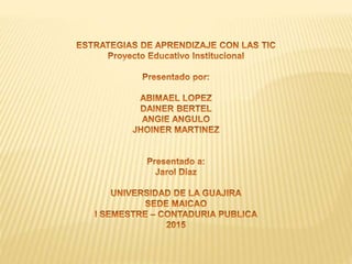 Este documento resume el proyecto educativo institucional de la Universidad de La Guajira. Detalla su misión, visión y principios, así como el contexto institucional, nacional e internacional. El documento también describe los planes de desarrollo considerados y la articulación necesaria con el entorno para el diseño estratégico del proyecto educativo.