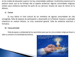 El documento presenta una descripción de varios aspectos sociales, culturales e intelectuales de la Diócesis de Cuautitlán, incluyendo medios de comunicación, economía, política, salud, derechos humanos, ecología, formación del clero y laicos, movimientos religiosos y formas de religiosidad popular en la región.