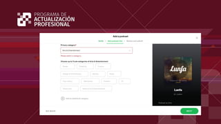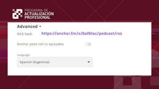 El documento proporciona información sobre la creación y publicación de podcasts. Explica las herramientas de edición de audio como DAW y conversores, así como recursos gratuitos de música y efectos de sonido. También cubre temas como el nombre, descripción y carátula del podcast, su publicación en plataformas y sitios de hosting, el uso de RSS, y métricas y estrategias de promoción en redes sociales.