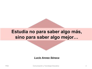Este documento presenta la introducción a un curso de posgrado sobre Comunicación y Tecnología Educativa. Explica que el objetivo es desarrollar conocimientos conceptuales, procedimentales y actitudinales sobre estas disciplinas pedagógicas. También describe los temas que se abordarán como comunicación educativa, tecnologías de información, evaluación, y aspectos prácticos como el uso de plataformas y herramientas digitales. Por último, resume las actividades de evaluación que incluyen participación en foros, desarrollo de
