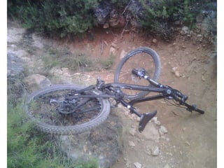 El documento es un breve relato de una salida en bicicleta de montaña. El autor salió más tarde de lo planeado y tuvo una subida más difícil de lo esperado. A pesar de estar cansado, disfrutó de la bajada aplicando lo aprendido en un curso de descenso, aunque perdió el control y cayó sin consecuencias. Aprendió que practicar requiere esfuerzo y planea salir más preparado la próxima vez.