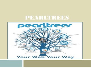 Pearltrees es una plataforma en línea gratuita donde los usuarios pueden coleccionar, organizar y compartir contenido de la web como páginas, videos, imágenes y archivos. Los usuarios pueden crear "perlas" para representar los elementos y organizarlas en "árboles" según sus intereses. La plataforma también permite comentar y navegar entre el contenido compartido por otros usuarios sobre temas similares.