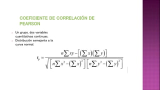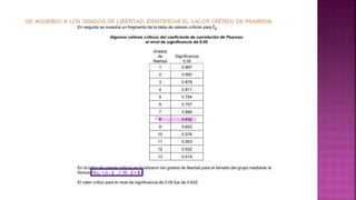 El documento presenta un análisis de asociación entre dos variables cuantitativas continuas, revelando que ambas variables están fuertemente correlacionadas. Se rechazó la hipótesis nula (rp=0) al obtener un valor de Pearson calculado de 0.97, superando el valor crítico de 0.632. Con un nivel de significancia p<0.05, se concluyó que existe una asociación directa entre las puntuaciones en ansiedad y depresión en el grupo estudiado.
