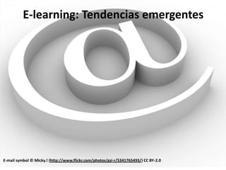 Este documento resume las nuevas tendencias emergentes en el aprendizaje electrónico (e-learning) como el m-learning (aprendizaje a través de dispositivos móviles) y los MOOC (cursos masivos en línea y abiertos). También describe cómo las escuelas tradicionales se están adaptando a los cambios sociales y tecnológicos incorporando el uso de dispositivos móviles e iPad en el aula. Finalmente, analiza tanto las oportunidades como los riesgos de estas nuevas formas de enseñanza y apre