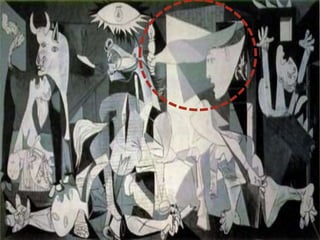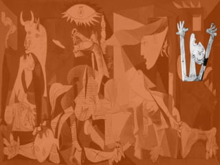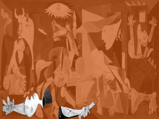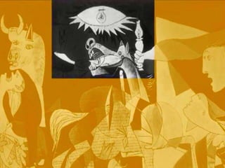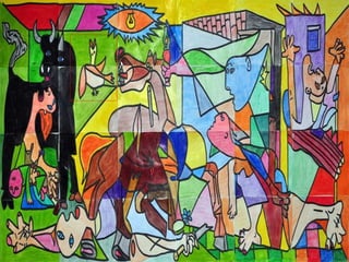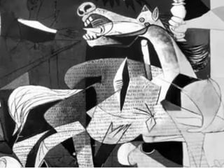 El documento presenta un resumen sobre el uso de imágenes en las artes visuales. Brevemente describe la obra "El Guernica" de Pablo Picasso y cita dos fuentes bibliográficas sobre arte en la escuela y expresión plástica.