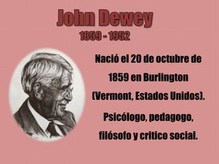 El documento presenta información sobre tres importantes pedagogos: John Dewey, Antón Makárenko y Paulo Freire. John Dewey creía que la educación debía proporcionar experiencias valiosas para preparar a los ciudadanos para la vida democrática. Makárenko fundamentó su pedagogía en la importancia de la colectividad. Paulo Freire se centró en una educación que hiciera a los educadores conscientes de su capacidad para ayudar a cambiar el mundo.