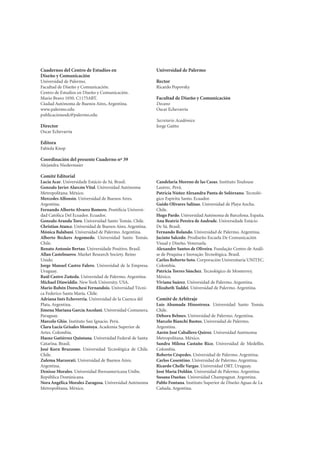 Este documento presenta un cuaderno académico dividido en tres secciones que exploran temas contemporáneos relacionados con la alfabetización, enunciación y comunicación en las disciplinas de diseño y lenguajes audiovisuales. La primera sección examina la alfabetización de diferentes disciplinas. La segunda sección analiza la relación entre diferentes campos. La tercera sección estudia nuevos modos de circulación y comunicación.