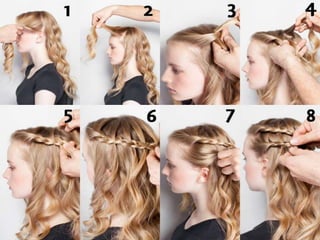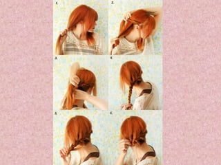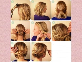 Este documento ofrece instrucciones paso a paso para hacer peinados de moda sencillos como recogidos y trenzas. Además, recomienda semirecogidos de trenzas para aquellas que prefieren llevar el pelo suelto pero estar a la moda. Al final, invita a los lectores a visitar la dirección indicada al principio para ver más estilos de peinado.