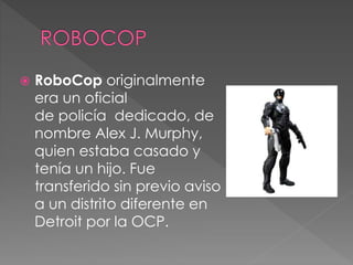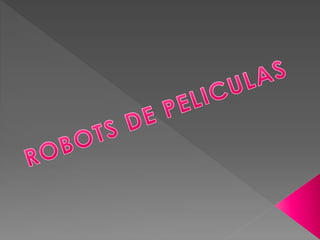 El documento presenta descripciones breves de varios personajes y robots ficticios de películas, series y libros como Robocop, WALL-E, el Terminator, C-3PO, Bender, los Autobots, el robot de la película Chappie, el deporte de boxeo de robots y el cuento El hombre bicentenario.