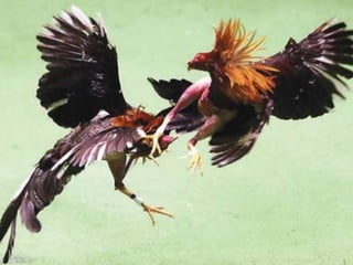 El documento describe la historia de las peleas de gallos, desde sus orígenes en Asia hasta su llegada a España y otros países. Explica que originalmente el gallo era venerado en algunas culturas por razones religiosas. También menciona que las peleas de gallos han existido por mucho tiempo en España e incluso fueron practicadas y disfrutadas por presidentes estadounidenses en el pasado, aunque ahora son ilegales en muchos lugares.
