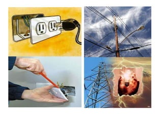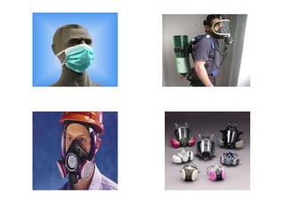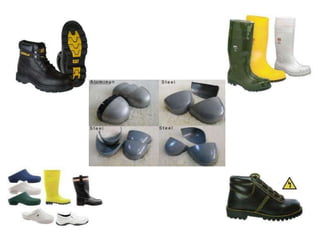 Este documento presenta los peligros de seguridad en el trabajo y los factores de riesgo eléctricos, mecánicos y locativos. Describe los elementos de protección personal como cascos, gafas, guantes y calzado para proteger la cabeza, cara, oídos, vías respiratorias, manos y pies. Explica que los equipos de protección individual se usan para protegerse de herramientas, maquinaria, energía eléctrica, superficies de trabajo y condiciones de almacenamiento y orden.