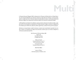 La propuesta educativa multigrado 2005 fue desarrollada por la Secretaría de Educación Pública de México para mejorar la enseñanza y el aprendizaje en escuelas con múltiples grados. Se basa en la colaboración entre alumnos y docentes y busca sistematizar experiencias exitosas adaptadas a las necesidades de grupos heterogéneos. La propuesta incluye sugerencias de planeación, actividades diferenciadas y estrategias de enseñanza para atender a estudiantes de diferentes niveles y promover un ambiente de trabajo en equipo.