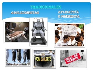 Este documento resume la historia y situación actual de la pena de muerte en diferentes partes del mundo. Detalla cómo se aplicaba la pena de muerte en el antiguo Perú y en épocas pasadas, e identifica países como Japón, Taiwán, Singapur y Corea del Sur que aún la aplican. También examina acuerdos internacionales para abolir la pena de muerte y resume argumentos a favor y en contra de la pena capital.