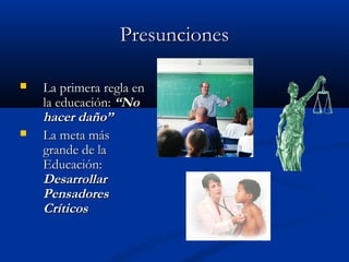El documento presenta información sobre actividades para elevar el pensamiento crítico y creativo en el aula. Define el pensamiento crítico como un proceso reflexivo y razonado enfocado en decidir qué creer o hacer. Describe algunas características de un pensador crítico como la curiosidad, el coraje intelectual y la habilidad para razonar. Entre las actividades sugeridas para fomentar el pensamiento crítico se encuentran cuestionar con preguntas esenciales, estudios de casos, debates y juegos de roles.