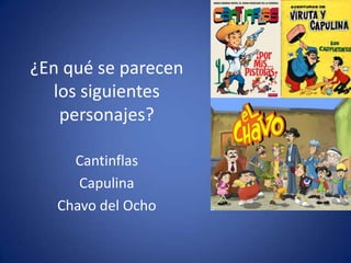 Los personajes de Cantinflas, Capulina y Chavo del Ocho comparten similitudes. Personajes como Chupitos, Familia de diez, Familiapeluche, El vitor, Resortes y Tin Tan también se parecen. Los cómics en los años 30 y 40 evolucionaron hacia posiciones más racistas y políticamente agresivas durante la Segunda Guerra Mundial. Héroes mexicanos populares en las décadas de 1960 y 1970 incluyen a El Santo y Blue Demon. Los pensamientos crean materia ya que somos creadores de nuestra prop