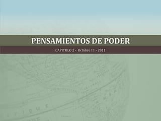 ![No veas el punto negro; mira el cuadro general Mira tu situación como un TODO en Dios.Siempre encontrarás lo positivo. Y sabemos que Dios hace que todas las cosas cooperen[a] para el bien de los que lo aman y son llamados según el propósito que él tiene para ellos.ROM 8.28](https://image.slidesharecdn.com/pensamientospodercap-2-111013162957-phpapp02/85/Pensamientos-de-Poder-Cap-2-10-320.jpg)