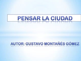Este documento discute la importancia de pensar en la ciudad y propone algunas preguntas sobre cómo y por qué hacerlo. Explica que la urbanización se está expandiendo y las ciudades están cambiando, por lo que es necesario que los ciudadanos comprendan mejor sus ciudades y trabajen juntos para transformarlas y mejorarlas de manera colectiva e individual.