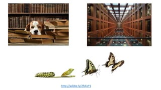 El documento aborda la necesidad de que las bibliotecas adopten el design thinking y el pensamiento crítico para conectar mejor con sus usuarios y adaptarse a sus necesidades. Se presentan ejemplos de bibliotecas que han innovado en sus espacios y servicios, promoviendo la creatividad y el aprendizaje colaborativo. Además, se enfatiza la importancia de contar historias y construir una marca que resuene emocionalmente con la comunidad.