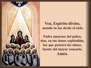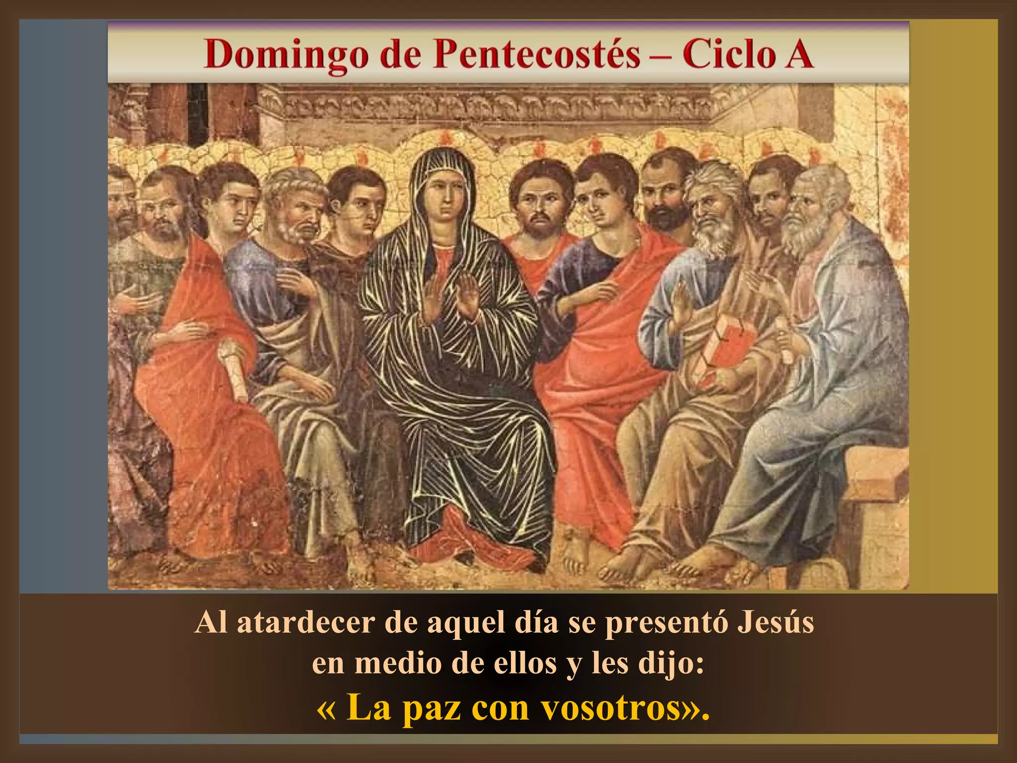 Jesús se apareció a sus discípulos el día de su resurrección y les dio el don de su Espíritu Santo. El Espíritu Santo transformó a los discípulos y les dio la intrepidez para anunciar el mensaje de Jesús por el mundo. Creer en el Espíritu Santo significa vivir de acuerdo a la Palabra de Dios y seguir a los profetas que Dios envía, anunciar el mensaje de Jesús a todos, y reconocer la unidad entre los cristianos.