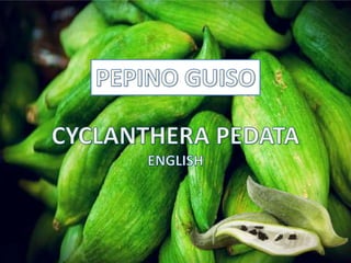 La caigua es una hortaliza trepadora originaria de Perú. Se cultiva en varios países de América del Sur y Central por sus beneficios para la salud. El fruto maduro se usa crudo o cocinado y tiene un sabor entre el pepino y el pimiento dulce. La caigua contiene fibra y compuestos que pueden ayudar a controlar el colesterol y la diabetes.