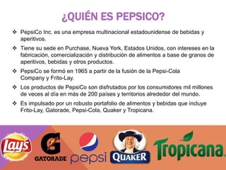 PepsiCo es una empresa multinacional estadounidense de bebidas y aperitivos con sede en Nueva York. Se formó en 1965 a través de la fusión de Pepsi-Cola Company y Frito-Lay y ofrece una amplia cartera de productos como Pepsi, Fritos, Gatorade y Tropicana. PepsiCo implementó con éxito un nuevo Sistema de Administrador de Almacenes de RedPrairie para optimizar sus inventarios en Colombia de forma más eficiente.