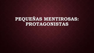 El documento presenta a las cinco protagonistas principales de la serie Pequeñas Mentirosas: Alison Di Laurentis, la chica desaparecida al comienzo de la serie; Aria Montgomery, que regresa a Rosewood después de un año en el extranjero; Hanna Marin, apasionada por la moda y mejor amiga de Mona; Spencer Hastings, la más inteligente del grupo que viene de una familia adinerada; y Emily Fields, nadadora lesbiana que estaba enamorada de Alison.