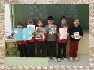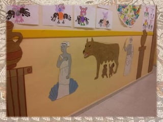 Este documento describe un proyecto escolar sobre la antigua Roma realizado por un grupo de niños. El proyecto comenzó con una introducción sobre lo que los niños ya sabían sobre los romanos y lo que querían aprender. Luego, cada niño escribió una carta a su familia pidiendo ayuda para investigar más sobre el tema. Reunieron mucha información que organizaron en una presentación en PowerPoint. A lo largo del proyecto, los niños aprendieron sobre varios aspectos de la cultura romana como su fundación, los acueductos, la