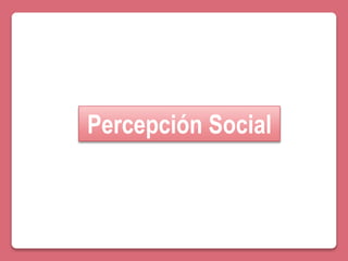 Este documento trata sobre la percepción social. Explica que la percepción social implica organizar información sobre otras personas y atribuirles características. Incluye procesos como la formación de impresiones, los procesos de atribución y los estereotipos. También describe los diferentes tipos de comportamiento no verbal como gestos, expresiones faciales y postura, y explica que estos pueden aprenderse cultural o genéticamente.