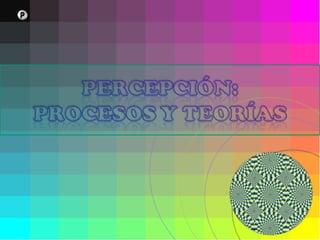 La percepción implica la interpretación y organización de las sensaciones a través de los sentidos y el cerebro. Los psicólogos de la Gestalt identificaron principios como la proximidad, semejanza y continuidad que guían la agrupación de estímulos. Existen teorías sobre si la percepción es un proceso directo guiado por la información o indirecto y conceptual, así como si es determinada por la experiencia o es innata.