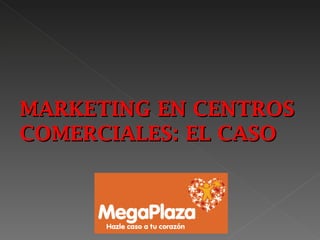 Este documento describe cómo MegaPlaza se desarrolló como un centro comercial exitoso en un mercado emergente en Lima, Perú. Implementaron estrategias de marketing efectivas como determinar las oportunidades del mercado, desarrollar un concepto diferenciado, y evaluar continuamente las necesidades de los clientes. MegaPlaza ahora atrae a casi 3 millones de visitas mensuales a través de una variedad de eventos, promociones y una sólida ubicación.