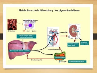 Este documento proporciona información sobre pruebas hepáticas funcionales y de enfermedades hepáticas. Explica las pruebas de bilirrubina, transaminasas, fosfatasa alcalina y GGT, y describe sus valores normales y anormales. También cubre la albúmina y otros tests de función hepática, y proporciona detalles sobre el metabolismo de la bilirrubina y las características y funciones de la albúmina.