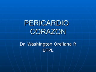 El documento describe la anatomía del pericardio y el corazón. El pericardio es una membrana que envuelve el corazón y protege sus movimientos. El corazón es una bomba dual que bombea sangre a los pulmones y al cuerpo a través de circuitos separados. Consta de 4 cámaras: aurículas derecha e izquierda, y ventrículos derecho e izquierdo.