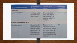 Este documento describe diferentes tipos de enfermedades pericárdicas como la pericarditis aguda, la pericarditis crónica constrictiva, el taponamiento cardíaco y el derrame pericárdico. Explica sus causas, síntomas, diagnósticos y tratamientos. La pericarditis aguda generalmente se produce por infecciones virales y se caracteriza por dolor torácico, frote pericárdico y derrame leve. La pericarditis crónica constrictiva causa rigidez del pericardio y dificultad en el