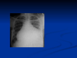 El documento habla sobre la pericarditis, una inflamación del pericardio. Describe los síntomas como fiebre, dolor precordial y disnea. En el examen físico se puede encontrar taquicardia y frote pericardico. En el electrocardiograma se puede ver elevación del segmento ST, inversión de onda T y depresión del segmento PR. Las causas incluyen infecciones como la tuberculosis, enfermedades autoinmunes, medicamentos e infecciones virales como el VIH. Los diagnósticos diferenciales son soplos sistó