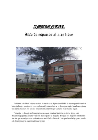 Este documento habla sobre la cultura en el municipio de Carmen de Viboral. Menciona eventos culturales como el Carnaval de comparsas y el Día de la antioqueñidad en el colegio Fray Julio Tobón B., así como los talleres que ofrece la Casa de la Cultura a la comunidad. También aborda el tema de las drogas y los talleres culturales que se realizan en el colegio Fray Julio.