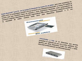 Los periféricos se dividen en cuatro categorías: entrada, salida, almacenamiento y conectividad/comunicación. Los periféricos de entrada permiten introducir datos a la computadora, los de salida muestran la información procesada, los de almacenamiento guardan los datos para su uso posterior, y los de conectividad facilitan la interacción entre computadoras.
